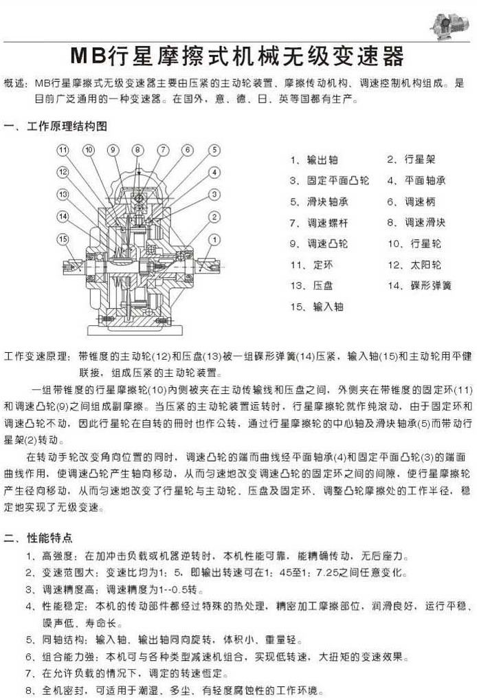 MB行星摩擦式機(jī)械無級(jí)變速器工作原理和結(jié)構(gòu)圖性能特點(diǎn)