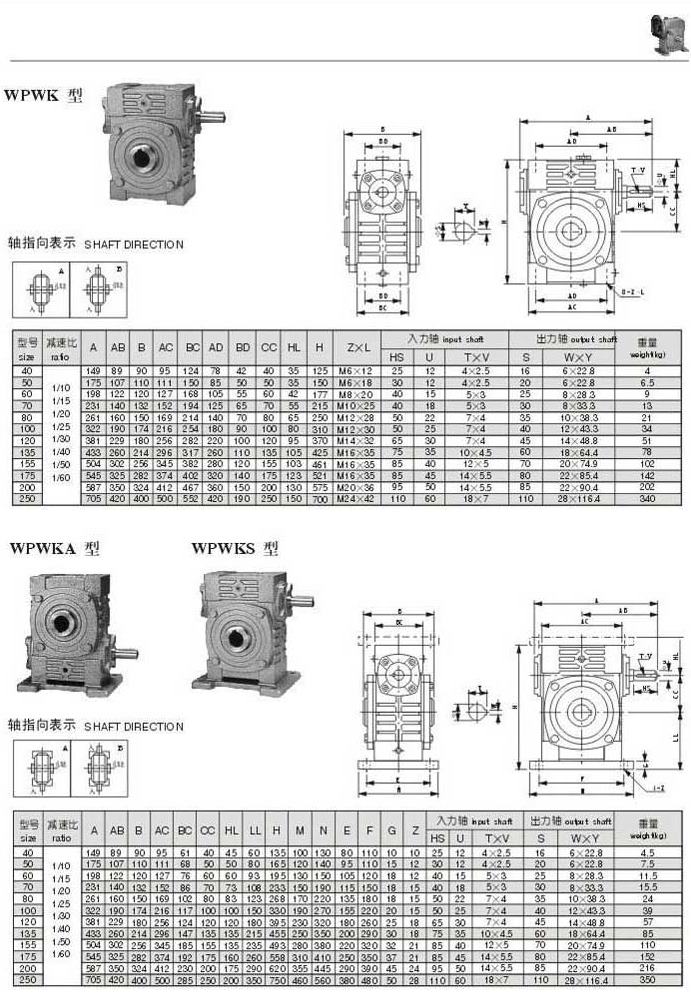 WPWK,WPWKA,WPWKS型型號(hào)參數(shù)圖表