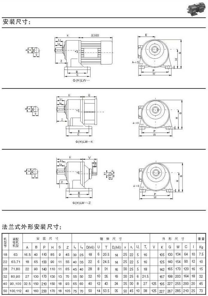 安裝尺寸法蘭式外型安裝尺寸